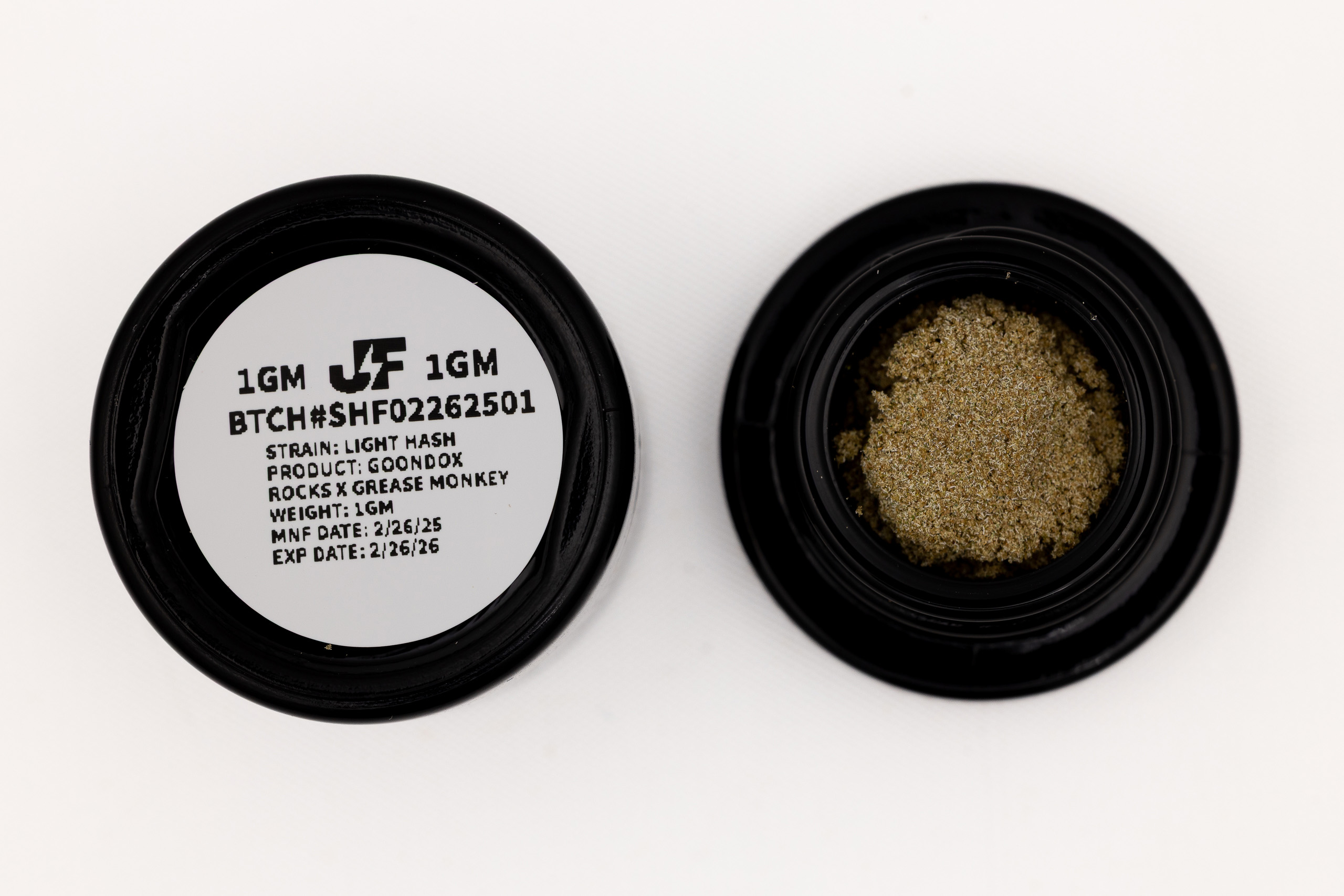 Goondox x Grease Monkey Light Hash is a premium 1-gram hash concentrate, crafted for smooth, flavorful, and potent effects. This blend combines Goondox’s rich terpene profile with Grease Monkey’s powerful indica-dominant genetics, creating a well-balanced and versatile hash experience.